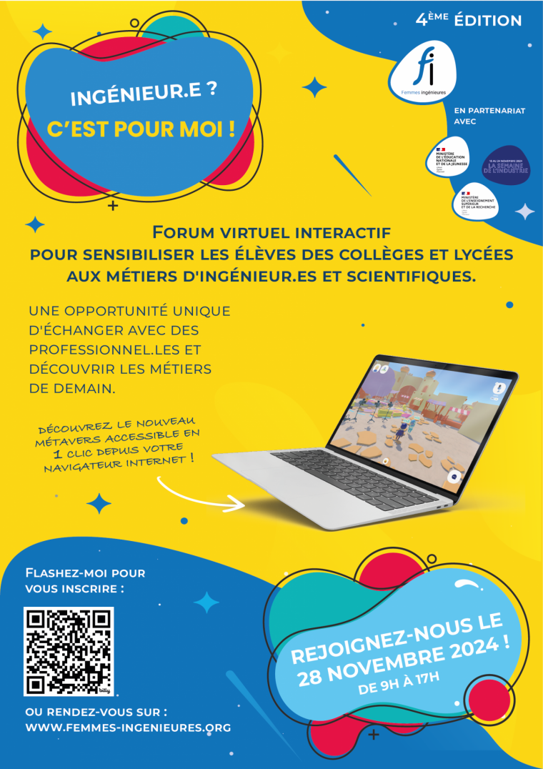 La 4ème édition du forum virtuel « Ingénieur.e ? C’ pour moi ! » se déroulera le jeudi 28 novembre 2024.