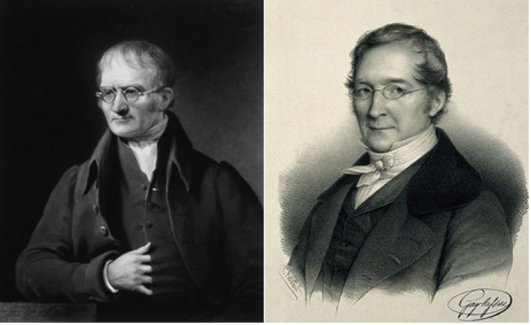 A la même époque, Gay-Lussac s'intéresse à la combinaison de composés chimiques gazeux et énonce une loi assez semblable à celle de Dalton : « Tous les gaz, en agissant les uns sur les autres, se combinent toujours dans les rapports les plus simples... de 1 à 1, de 1 à 2, ou de 1 à 3...Ces rapports de volume ne s'observent point dans les substances solides et liquides, ou lorsqu'on considère les poids. »