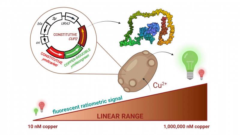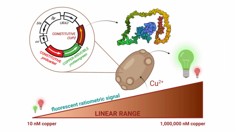 Actuellement, les méthodes analytiques de détection du cuivre utilisées mettent en jeu des technologies qui nécessitent un appareillage coûteux et une forte expertise expérimentale. Par ailleurs, ces méthodes quantifient la quantité totale de cuivre présent dans un échantillon, d’eau par exemple, mais ne différencient pas le cuivre assimilable par les organismes vivants. Des chimistes du CBM (CNRS) viennent de développer un nouveau système de détection du cuivre très sensible et facile à mettre en œuvre. Il consiste en un biocapteur à base de la levure Saccharomyces cerevisiae qui a l'intérêt d'être un organisme unicellulaire eucaryote présent dans la nature, intrinsèquement capable d’assimiler le cuivre.