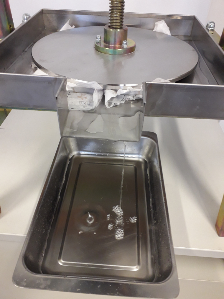 Le pressoir utilisé est entièrement en inox et se démonte facilement pour un nettoyage optimal.