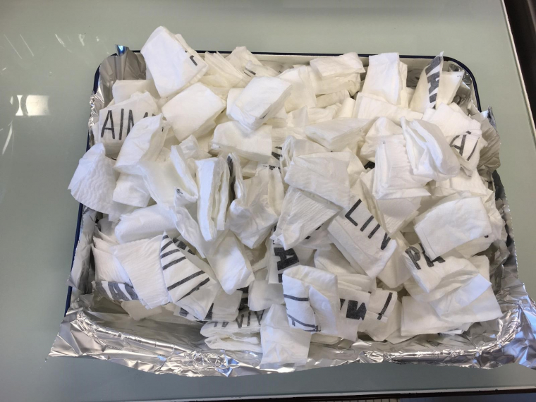 En l’absence d’informations publiées sur les méthodes ayant abouti aux résultats présentés dans les medias, le SCL a alors mis en place une stratégie d’investigation inédite qui porte à la fois sur des analyses sur couche entière (broyat) et en situation d’utilisation (simulant urine).