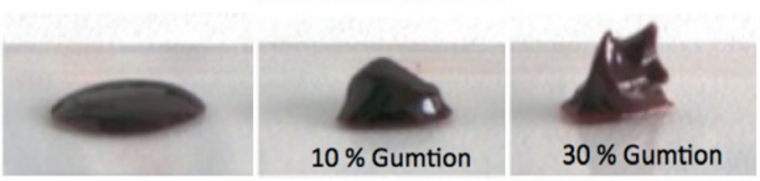 Au laboratoire, de nombreuses recettes ont été testées et nous nous intéressons pour le moment principalement au gumtion. C’est un matériau formé de plusieurs constituants, eux-mêmes de composition assez complexe :