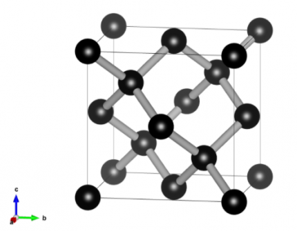 Les atomes de carbone sont situés : aux 4 sommets de la maille (ils sont alors partagés entre 8 mailles), aux centres des 6 faces (ils sont alors partagés entre 2 mailles) et dans 4 sites tétraédriques de la maille (ils appartiennent alors en propre à la maille).