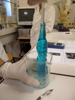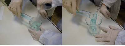 - Ajouter lentement la solution de borax à la solution aqueuse de PVA tout en agitant à l’aide d’une baguette en verre ou d’une spatule. Cela prend en masse : c’est le Slime®