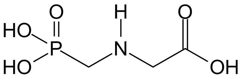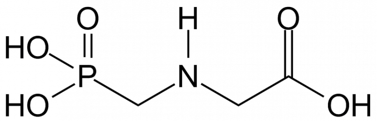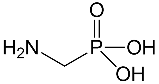 Un herbicide bien connu du grand public est le Roundup®, commercialisé par l’entreprise Monsanto, dont le principe actif est le glyphosate, (N-(phosphométhyl)glycine), de formule C3H8NO5P. Il s’agit d’un herbicide non sélectif, absorbé assez médiocrement par les feuilles des plantes et qui induit la mort des cellules végétales, en bloquant la biosynthèse des acides aminés aromatiques.