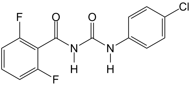 Les benzoylurés perturbent la formation de la chitine, polymère qui constitue l’exosquelette des insectes et assure leur protection et leur survie. Lors de la mue suivant le contact avec le produit, l’insecte meurt.