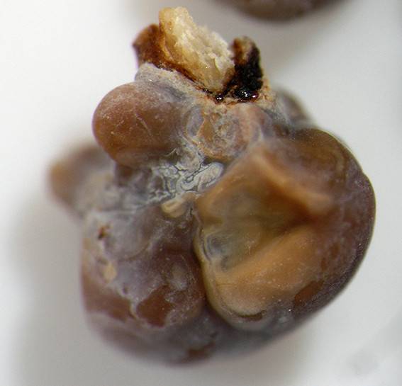 La taille des calculs rénaux peut être variable. Ici ce calcul mesure un demi-centimètre.