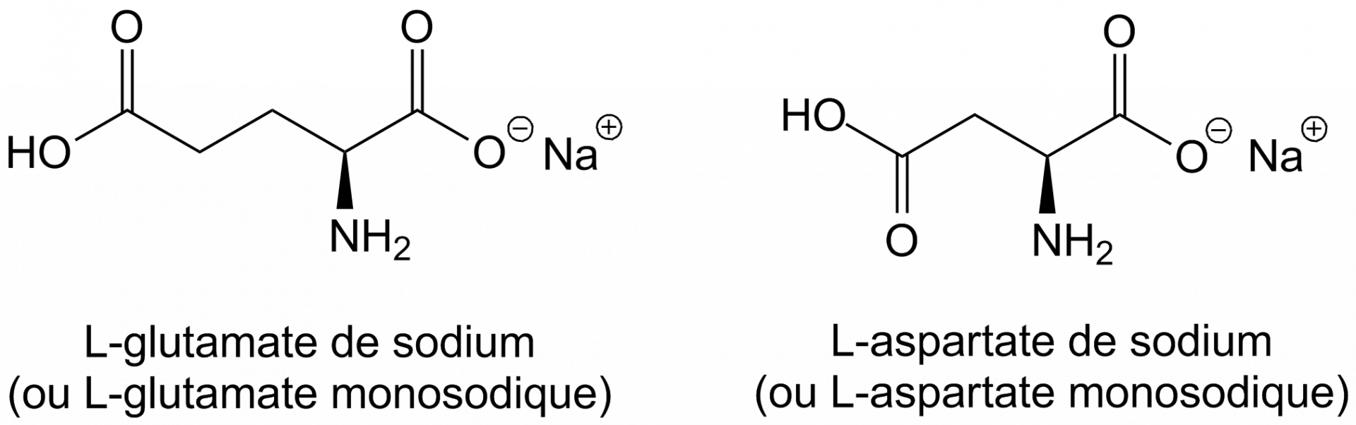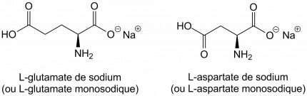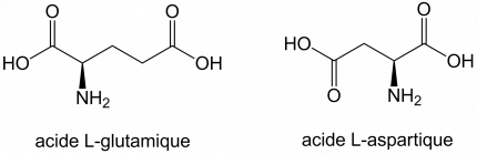 Il est maintenant bien établi que la saveur umami est l’une des cinq saveurs primaires. Le rôle physiologique de cette saveur est d’identifier la présence d’aliments riches en protéines (via l’ion glutamate ou l’ion aspartate libres ou libérés lors de la protéolyse1), comme le bouillon de cuisine, la viande, le poisson, les tomates, les algues, les fruits de mer et certains fromages comme le parmesan, par exemple. Bien que de nombreuses molécules puissent générer un goût umami chez l’être humain, la sensation umami est une des plus difficiles à décrire. Elle est aussi une des saveurs les plus complexes, du fait principalement de la rareté des composés qui possèdent un goût umami pur. Le L-glutamate de sodium est le composé de référence pour cette saveur, bien qu’il possède un goût salé lié à la présence de l’ion sodium. Un autre acide aminé, l’acide aspartique (Figure 11) est aussi capable de générer un goût umami. Il faut souligner qu’on trouve une quantité relativement importante de l’ion L-glutamate dans le lait humain, montrant ainsi que la saveur umami est une des premières saveurs à laquelle nous sommes exposés.