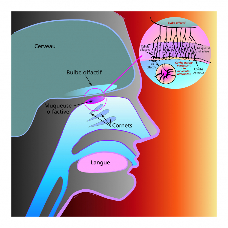Le rôle de l’odorat dans la perception des aliments en bouche est souvent sous-estimé. Chacun de nous prend conscience de son importance lors d’un simple rhume. Le mucus produit en abondance recouvre la muqueuse olfactive et empêche les molécules odorantes de stimuler notre odorat, supprimant alors une des composantes essentielles de la flaveur qui est l’odeur. Nous pensons perdre le « goût » des aliments alors que nous ne percevons en réalité que la saveur. La gustation correspond donc stricto sensu, uniquement aux sensations perçues par les papilles gustatives de la langue, alors que le goût regroupe des sensations gustatives, olfactives et trigéminales.