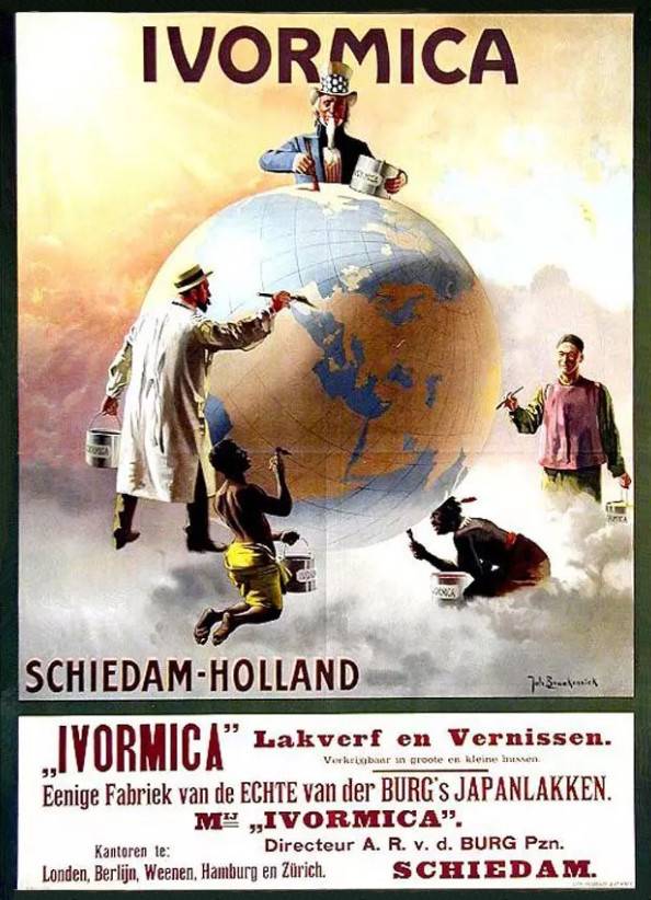 At the end of 1927 the Hafkenscheid firm was sold to Ivormica, a producer of coatings and varnishes at Schiedam, near Rotterdam. The picture shows an advertisement poster from 1909.