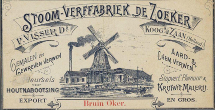 Pigments and other painting materials were imported into the Netherlands from all over the world. Since the 16th century the region ten miles north of Amsterdam was highly industrialised with hundreds of windmills in which also pigments were ground to high quality powders. During the 19th century several of these mills also introduced steam engines. The steam paint factory De Zoeker was one of those.
