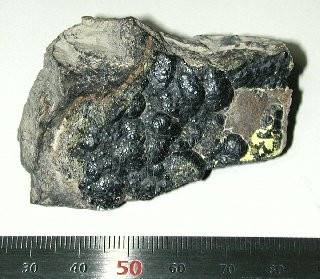 Une fois l’étude de sels et d’oxydes d’uranium faites, elle se penche sur les minéraux contenant de l’uranium. Elle découvre alors que certains minéraux, dont la pechblende (Figure 3) fait partie, ont une radioactivité bien plus élevée qu’attendu. Après maintes vérifications, elle en conclut que la pechblende contient un élément inconnu mais ayant une radioactivité bien plus forte que l’uranium.