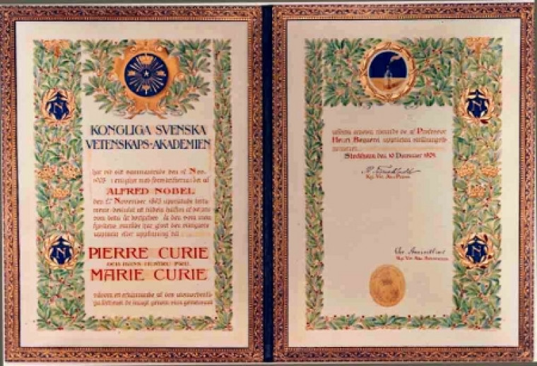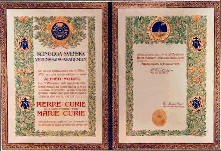 En 1903, les Curie ainsi qu’Henri Becquerel sont récompensés pour leurs travaux en recevant le prix Nobel de physique (Figure 6). C’est la consécration pour le couple.