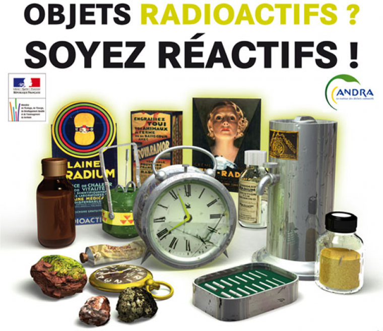 L’abandon de l’usage du radium a laissé de nombreux sites pollués (sites dont le sol ou les bâtiments ont été contaminés par le radium) et objets radioactifs. Aujourd’hui, l’ANDRA (Agence Nationale pour la gestion des Déchets RadioActifs, Figure 11) est chargée de collecter et de stocker les objets contenant du radium.