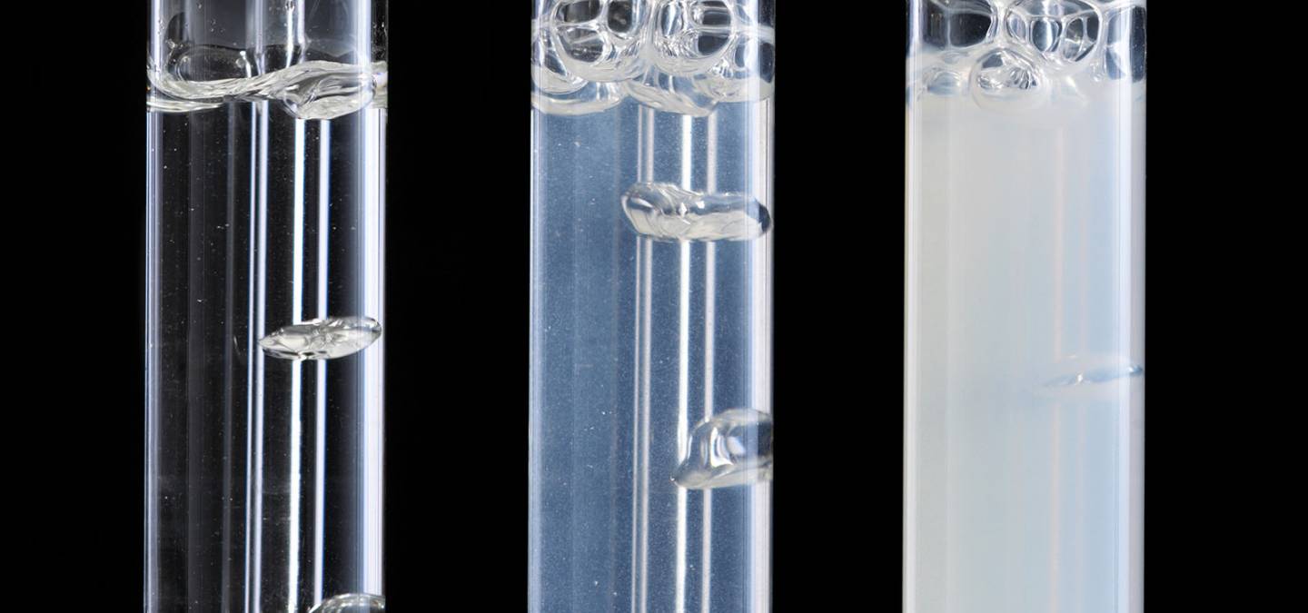 Dans la deuxième et troisième expériences, il se forme dans un premier temps un précipité blanc de carbonate de calcium. Puis si on continue l'ajout important de dioxyde de carbone, on constate que le précipité se redissout.