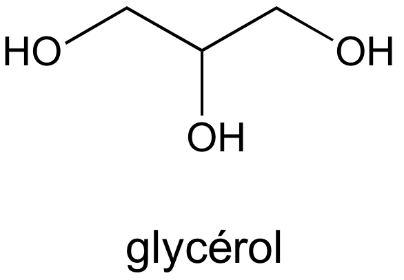 Le glycérol (Figure 4) est une substance incolore et visqueuse, inoffensive pour l’organisme, intervenant avec les acides gras dans la formation des lipides (phospholipides membranaires et triglycérides). Le glycérol est dépourvu de propriétés aromatiques mais confère un caractère onctueux au vin.