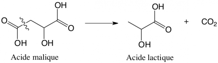 L’acide malique, du latin malum qui signifie « pomme », est omniprésent chez les végétaux. Cet acide est métabolisé en acide lactique et en dioxyde de carbone par les bactéries lactiques comme Oenococcus oeni (Figure 11).