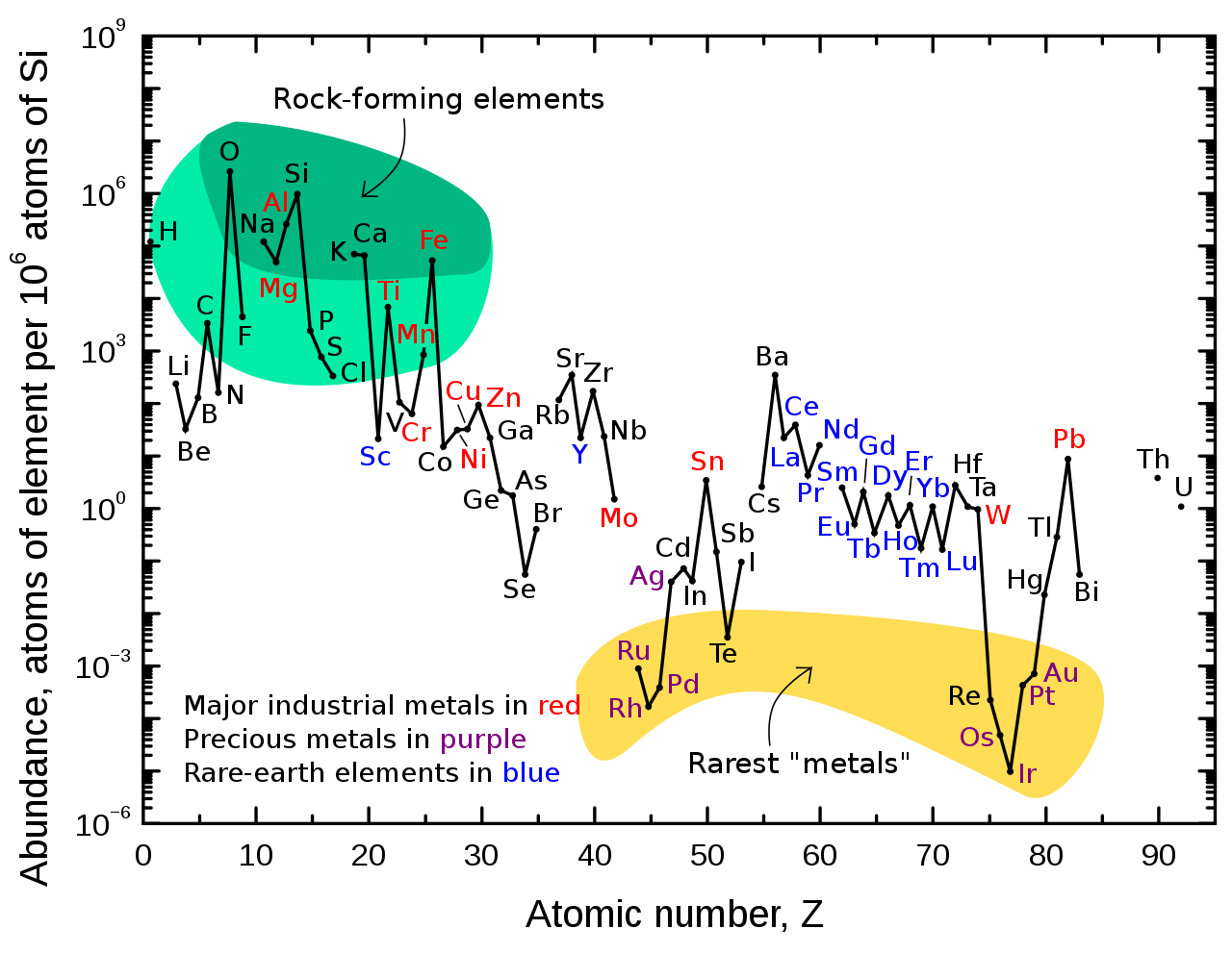 Le graphique ci-dessous représente l'abondance des éléments sur Terre en fonction de leur numéro atomique.