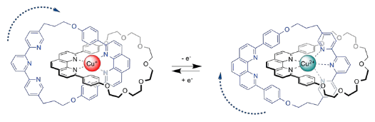 La rotation du premier anneau par rapport à l’autre peut être générée via l’oxydation ou la réduction de l’ion cuivre central.