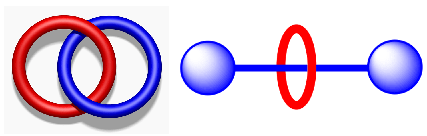 Remarque : le chiffre [2] indique qu’il s’agit des structures les plus simples possibles : deux anneaux entrelacés, un anneau enfilé sur un axe.