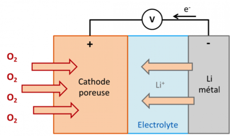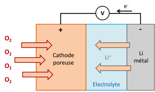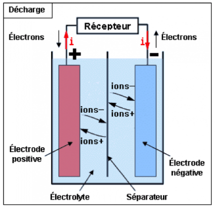 Une batterie (souvent indifférenciée avec le terme accumulateur par abus de langage) est composée d’une cathode où se déroule la réduction des métaux et d’une anode pour l’oxydation des métaux, ces électrodes sont imprégnées par un électrolyte conducteur pour permettre la circulation des ions. Le séparateur sert à éviter au maximum les courts-circuits dans la batterie.