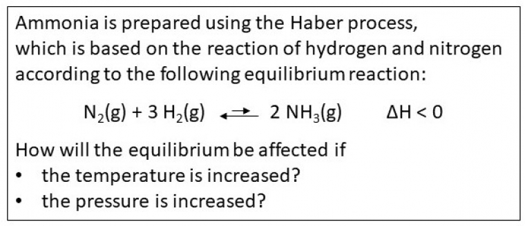 Marais et Jordaan (2000) montrent qu’avant de pouvoir répondre aux questions d’un problème portant sur la synthèse de l’ammoniac par le procédé Haber, il faudrait aux étudiants de première année au moins treize étapes d’interprétation de l’ensemble des symboles de l’équation donnée dans l’énoncé (Figure 3)1.