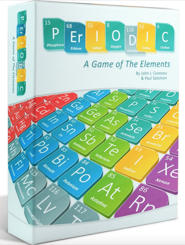 "Periodic : A Game of The Elements" est un jeu de stratégie anglophone autour du tableau périodique des éléments. Une façon ludique de s'intéresser au tableau périodique, tout en pratiquant l'anglais!
