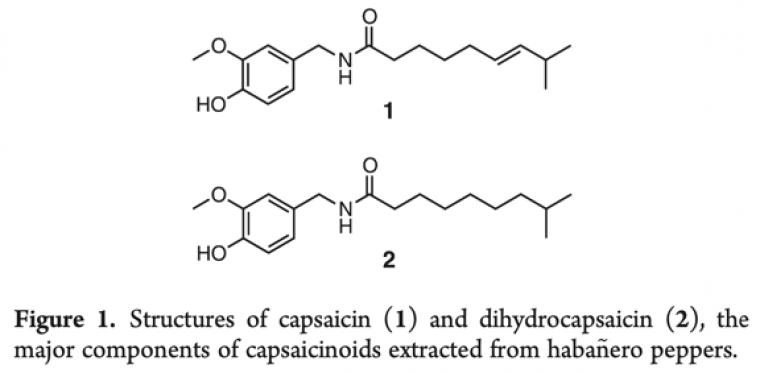 - Extraction, Purification, and Spectroscopic Characterization of a Mixture of Capsaicinoids, C. E. Wagner et al., J. Chem. Educ. 2011, 88, 1574–1579 (novembre 2011)