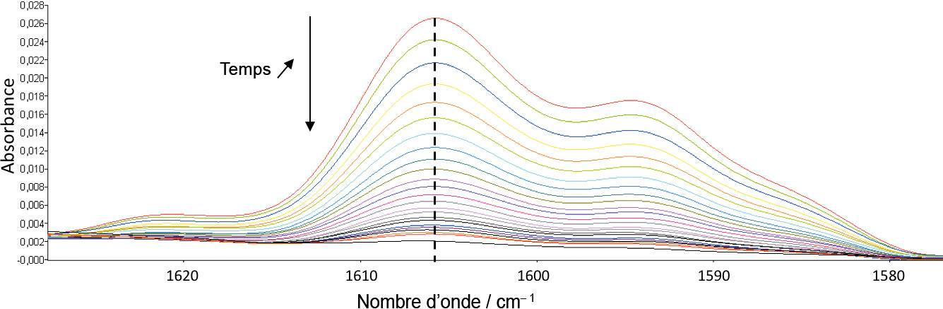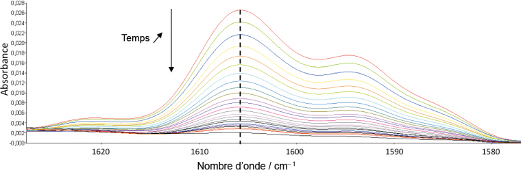 Cette étude montre que la spectroscopie infrarouge, communément utilisée pour des analyses structurales, peut également permettre de suivre une réaction chimique.
