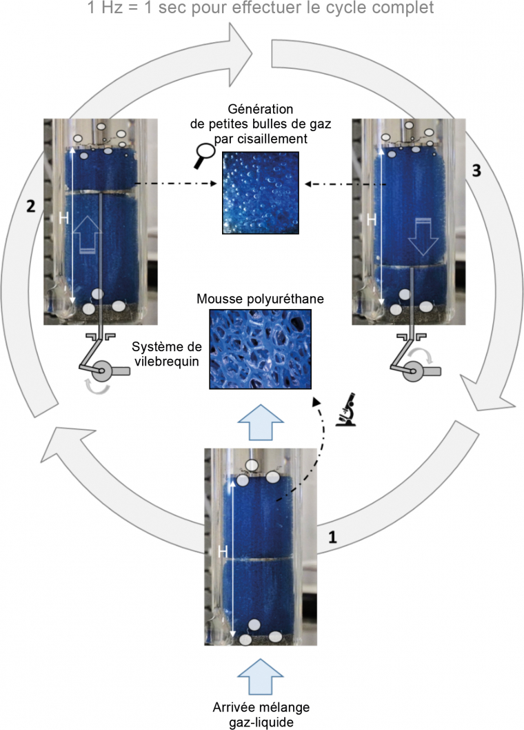 Cet article décrit la conception et les premiers résultats prometteurs d’une nouvelle « famille » de réacteurs particulièrement intéressante pour les transformations chimiques en présence de deux phases, liquide et gaz. Son originalité réside dans l’utilisation pour la première fois d’un garnissage élastique qui va être soumis à des cycles de compression-détente pour intensifier le transfert du gaz à l’eau. Le pilote de démonstration est directement inspiré d’une technologie continue depuis l’Antiquité : le vilebrequin. Une faible énergie électrique est nécessaire pour son fonctionnement et l’intensification du transfert gaz-liquide. Ce réacteur est baptisé par les auteurs « réacteur à lit dynamique ou élastique ». Un exemple de son fonctionnement avec de l’eau en présence de CO2(g) est présenté.