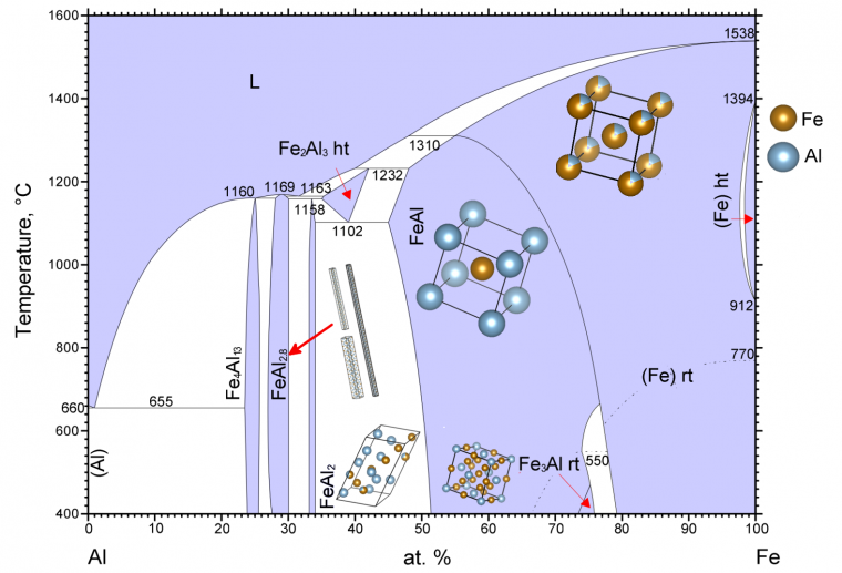 Les alliages fer-aluminium, pouvant exister sous une grande diversité de variétés allotropiques, offrent une alternative efficace et moins coûteuse au palladium pour les réactions d’hydrogénation. Des diagrammes de phase avec description fine des mailles cristallines peuvent agrémenter un cours de cristallographie, avec des relations structures-propriétés originales, pour comprendre les performances chimiques de ces alliages à haute valeur ajoutée.