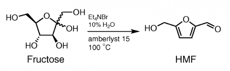 La déshydratation du fructose en 5-hydroxyméthylfurfural est utilisée pour illustrer une discussion sur les réactifs biosourcés en synthèse organique. Elle est réalisée en réacteur classique discontinu et en réacteur continu.