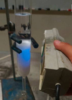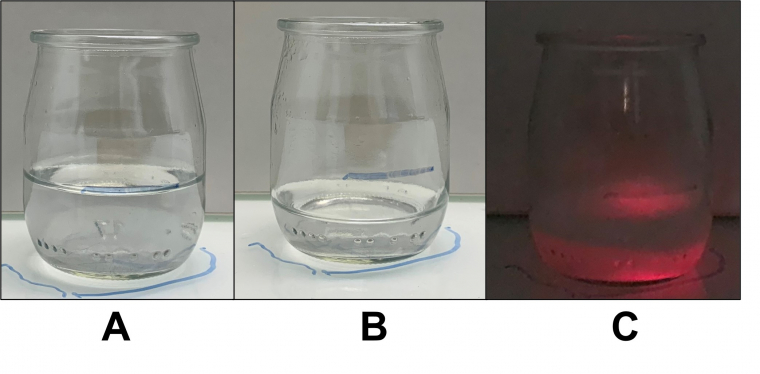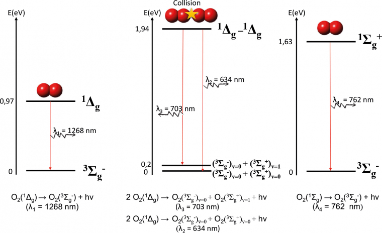 L’objectif est de produire, à l’aide de différents protocoles, du dioxygène O2 dans son état 1Δg à une concentration suffisante pour être capable d’observer la luminescence rouge (634 et 703 nm). Pour cela, les auteurs mettent en œuvre la réaction chimique entre les ions hypochlorite et le peroxyde d’hydrogène. Les ions hypochlorite sont issus soit d’eau de Javel commerciale, soit de pastilles elles aussi commerciales de dichloroisocyanurate de sodium. Le peroxyde d’hydrogène est fourni soit par l’eau oxygénée disponible en pharmacie ou en supermarché, soit par la solution concentrée à 130 volumes disponible au laboratoire. Divers protocoles sont présentés, permettant d’observer le phénomène dans différentes conditions.
