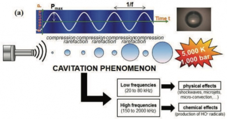 La chimie par ultrasons — ou sonochimie — exploite le phénomène de cavitation pour générer des pressions et températures localement très élevées modifiant considérablement les propriétés physico-chimiques du milieu. Les bulles créées sont alors de véritables réacteurs chimiques miniatures : dans l’eau des radicaux H• et HO• sont produits, pouvant initier des réactions originales. L’auteur présente ainsi des conversions rédox sur des solutions aqueuses de glucose, en présence ou non de catalyseurs solides. Un document pouvant servir de point de départ à un projet de TIPE.